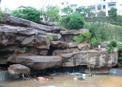 3、GRC假山造型设计、施工工艺较好,可塑性大,在造型上需要特殊表现时可满足要求,加工成各种复杂形体,与植物、水景等配合,可使景观更富于变化和表现力。